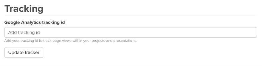 Starting today, organizations can add a custom Google Analytics tracking id for detailed stats on projects, embeds, and presentations.