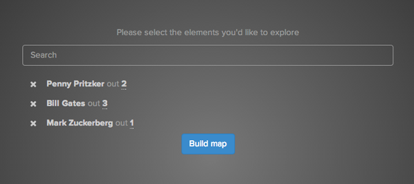 With prompted mode, you choose the map you'd like to build. Type the name of any element and hit enter to add them to your list. By default we'll include that element and its direct connections. Add as many elements as you'd like.